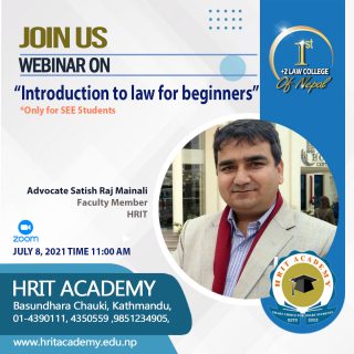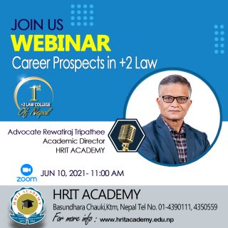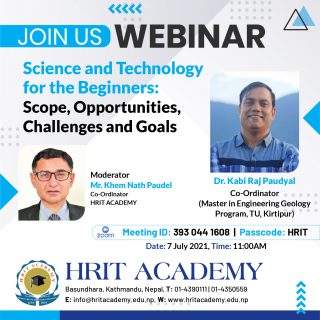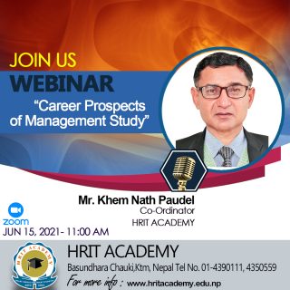 Hrit Academy is organizing a webinar titled “Management Study: Prospects, Opportunities and Challenges”. The keynote speaker of the webinar is Dr. Sushil Kumar Panta and the moderator is Mr. Khem Nath Paudel, Co-Ordinator, Hrit...