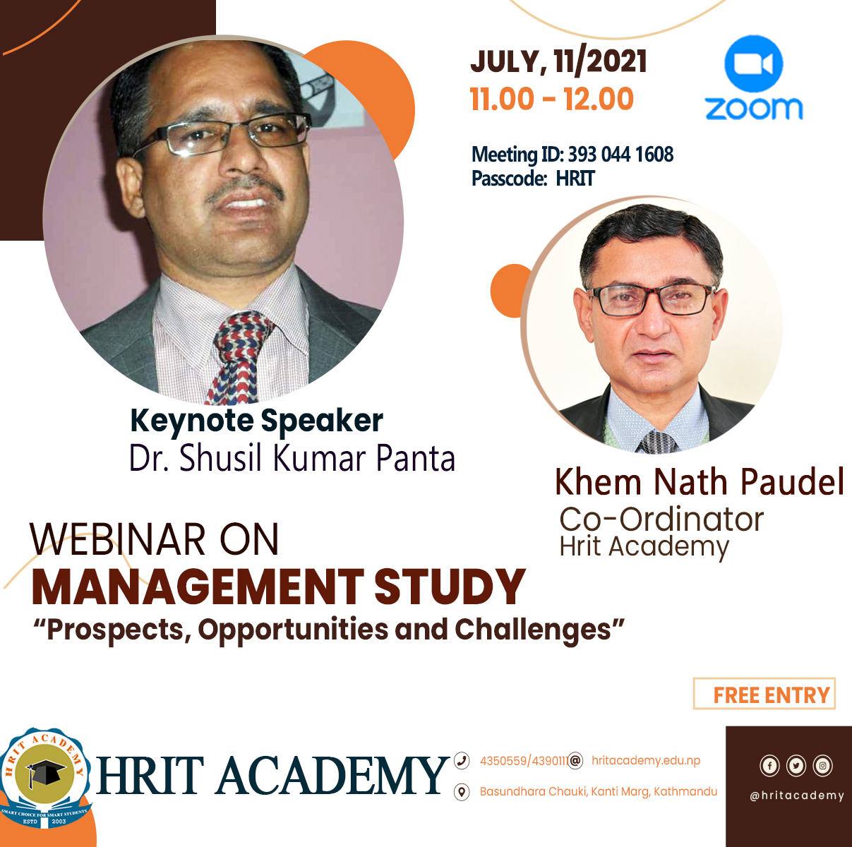 Hrit Academy is organizing a webinar titled “Management Study: Prospects, Opportunities and Challenges”.